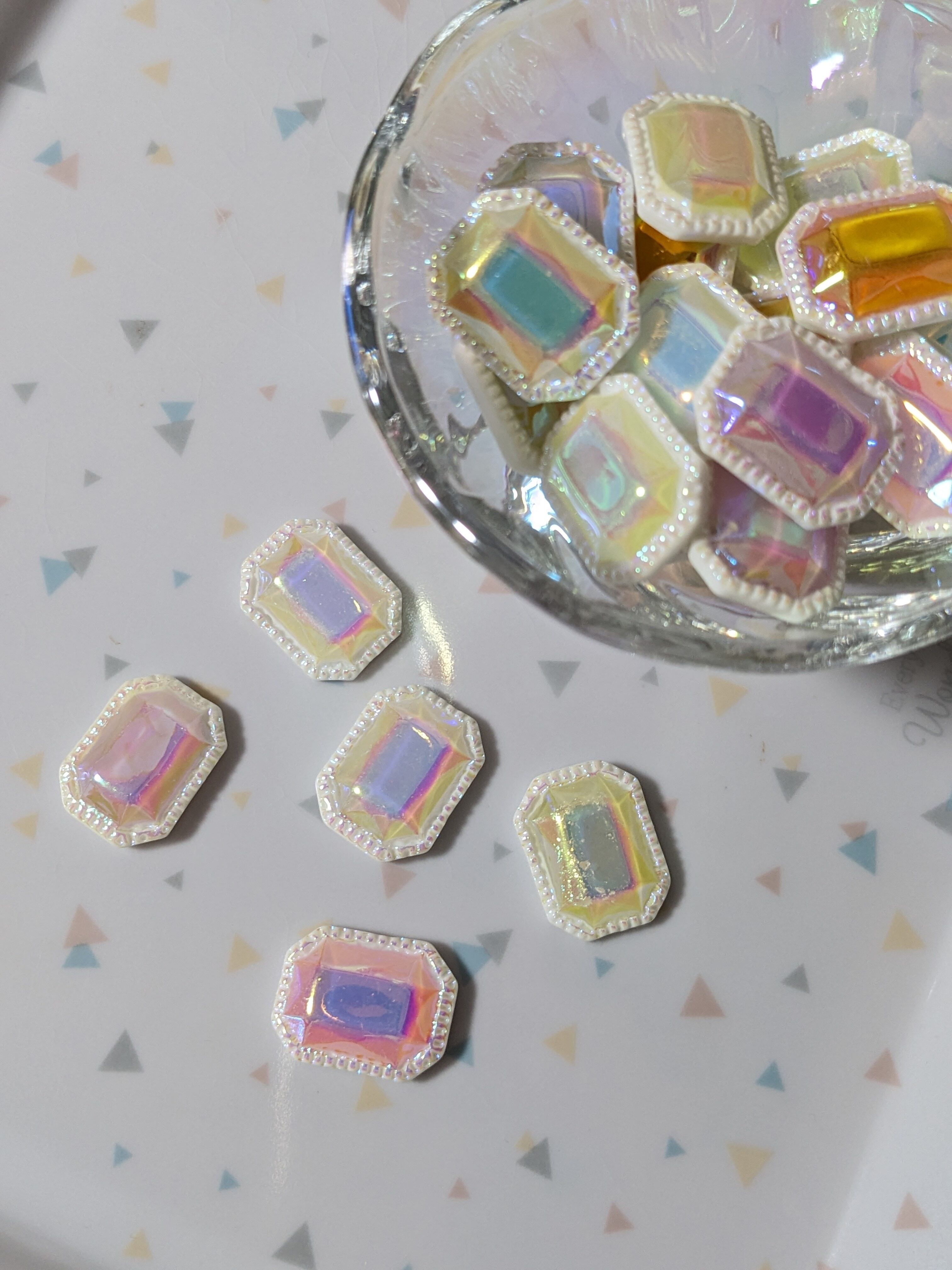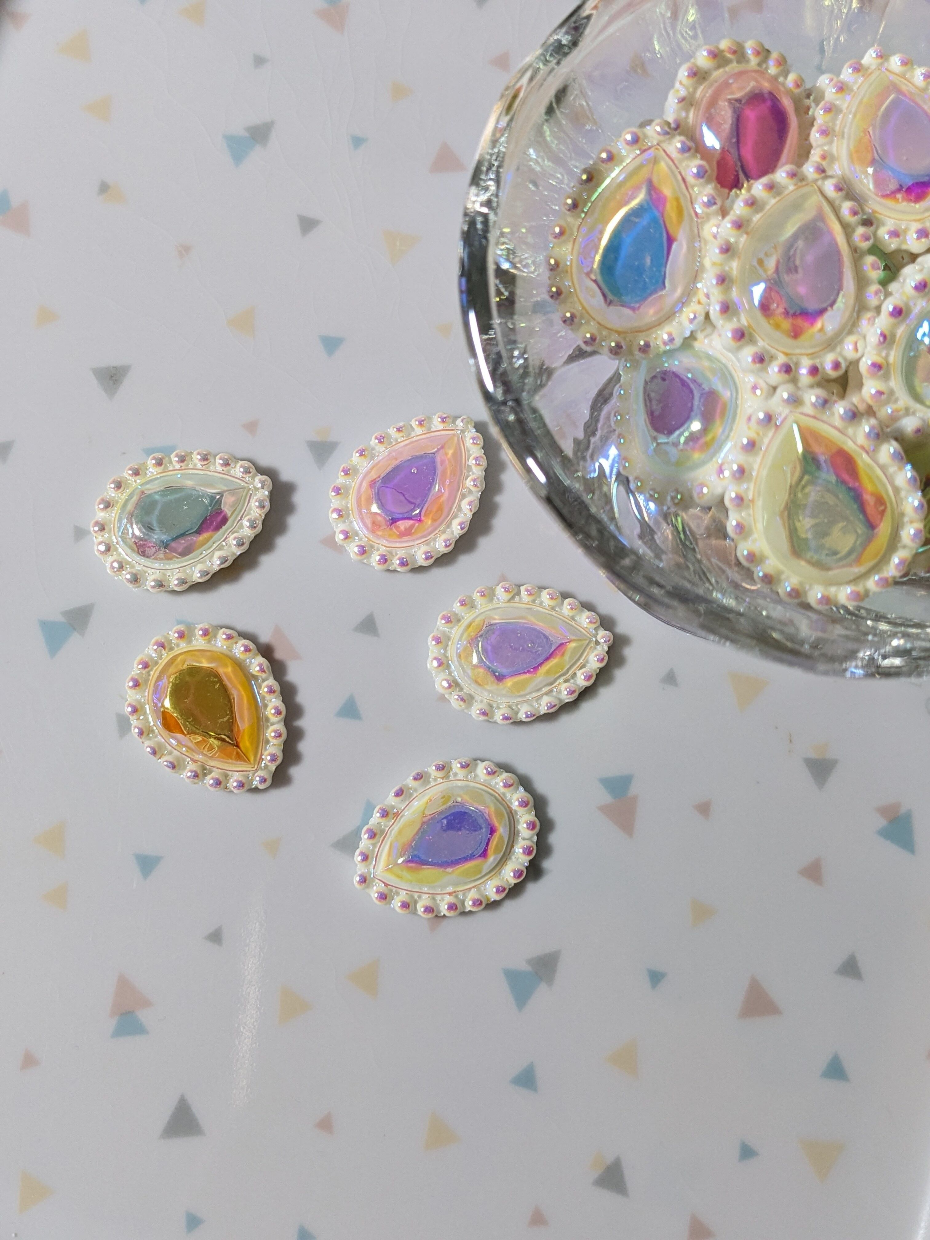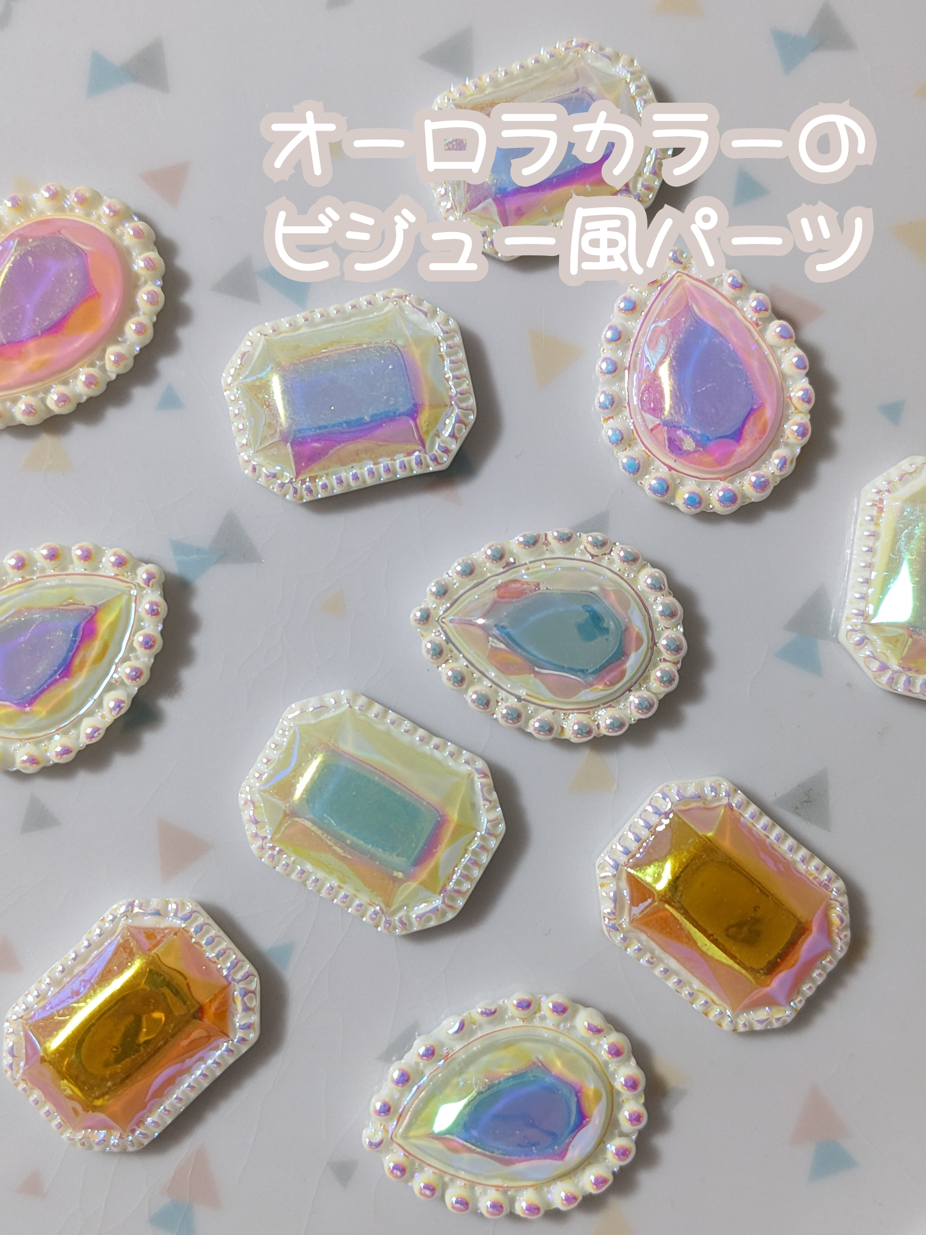 【10個】オーロラカラーのビジュー風パーツ